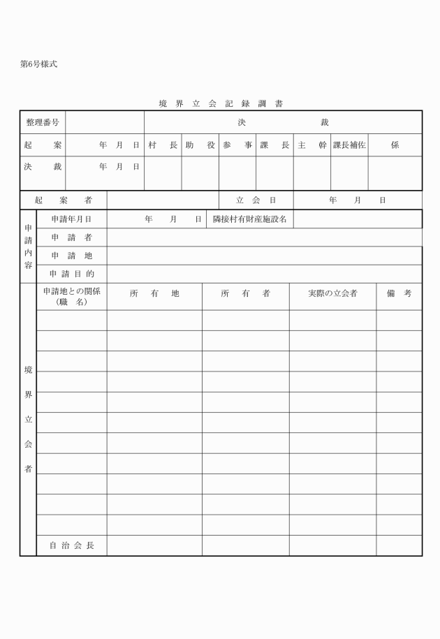 (1) 境界確定書には村長及び申請人記名調印すること。