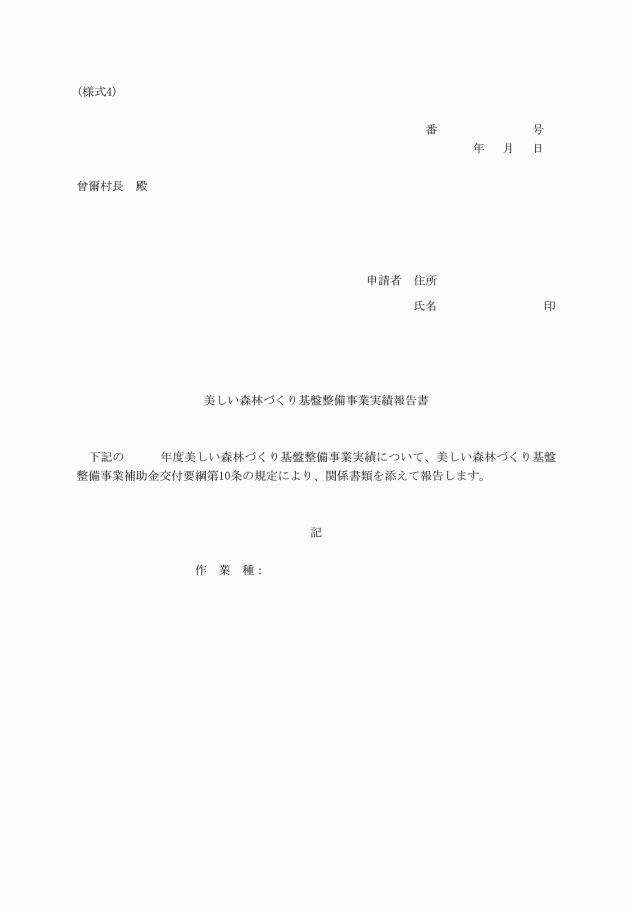 (1) 美しい森林づくり基盤整備事業実績報告書(第4号様式)